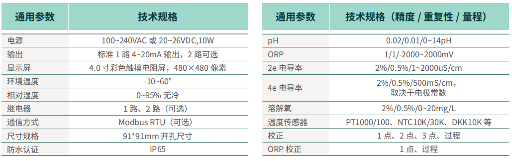 - 通用性变送器,支持多种测量参数,pH/ORP,电导率 / 电阻率,溶解氧,浊度 /MLSS/ 污泥浓度,余氯/ 二氧化氯 / 总氯以及离子电极(氨氮、硝氮、氟离子、氯离子)等