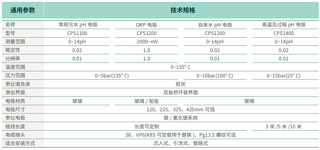 CPS1100/1200 在线 pH/ORP 电极