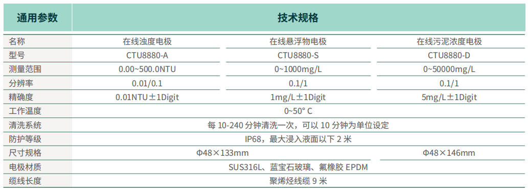 CTU8880 系列 在线浊度 / 悬浮物浓度 / 在线污泥浓度电极